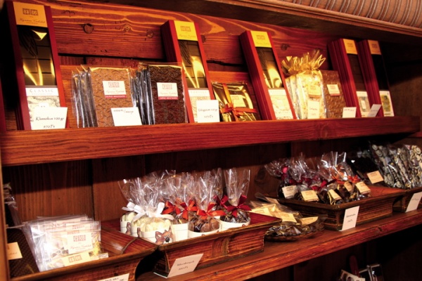 Az alapanyagokat megpróbálják a környékről beszerezni, a felhasznált bor lehetőleg Nagymarosról van, a gyümölcsök a Duna-Ipoly Nemzeti Park területéről, akárcsak a méz, ami az édességfokozó. Tejet a csomádi tehenészetből vásárolnak, egyedül a csoki alapanyag jön Belgiumból és Franciaországból, pontosabban ottani cégektől. A Cacao Barry és a Callebaut cégek a világ legnagyobb csokoládé alapanyag kereskedői, és komoly figyelmet szentelnek a vásárlóiknak, így Gábor és Rita is tudják, hogy melyik alapanyag honnan származik, mely ország, mely régiójának melyik dűlőjéről, és ez nem vicc. A kakaóbab a honos területeken úgy működik, mint mifelénk a szőlő. Vannak alap és dűlős tételek, és bizony az abból készült csokiban nincs két egyforma, jól elkülöníthető kóstoláskor származási hely alapján a csokoládé. Az mondjuk már önmagában döbbenetes, hogy a belga cégnek több mint 1500 féle alapanyaga van a csokikészítéshez. Ebből tizenhetet használnak fel Nagymaroson, amiből több mint 170 féle terméket állítanak elő.